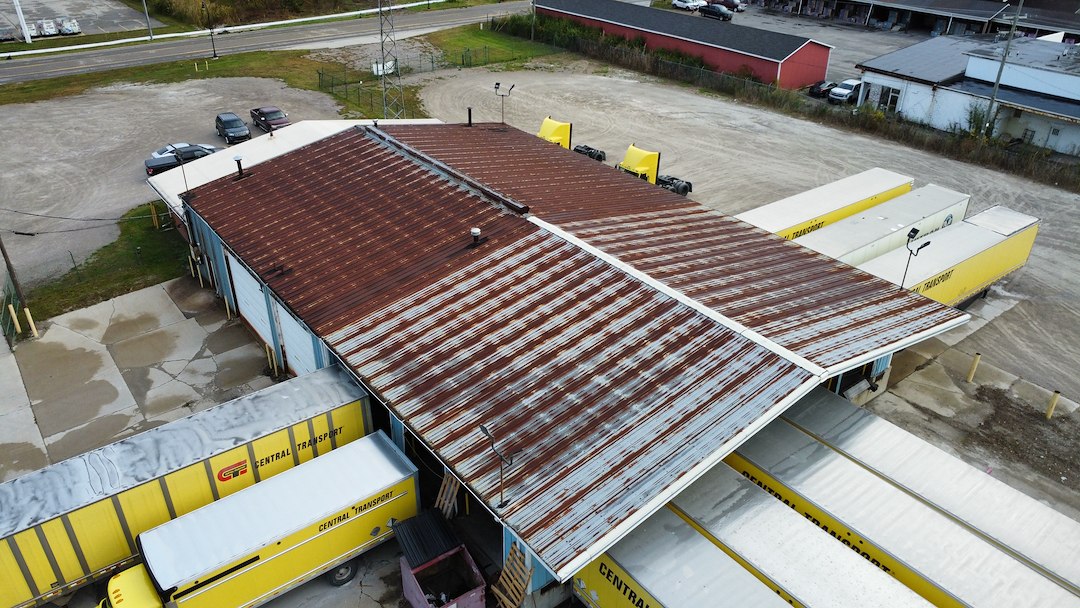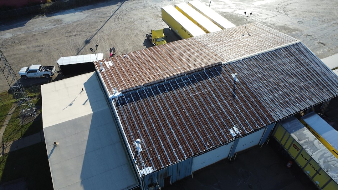 Our team completed a full restoration in Port Huron, Michigan, featuring a 15-year GAF High Solids Silicone System applied over a metal roof.